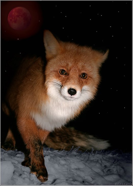 Вот так и на этот раз. Лисица, пользуясь спасительным светом луны, ушла полем, а навстречу ей вышел лис, который, запутав её след, остановился в ближайшем ко мне лесном массиве и стал лаять (по-лисьи), отвлекая преследователя на себя. Кто слышал лай самца лисицы, тот знает, что этот крик на лай собаки совсем не похож. Я слышал его не первый раз, и, тем не менее, мне было приятно услышать эти звуки красивой лунной ночью.Ночь оживает, когда в ней раздаются крики диких зверей и птиц,и превращается в сказку.