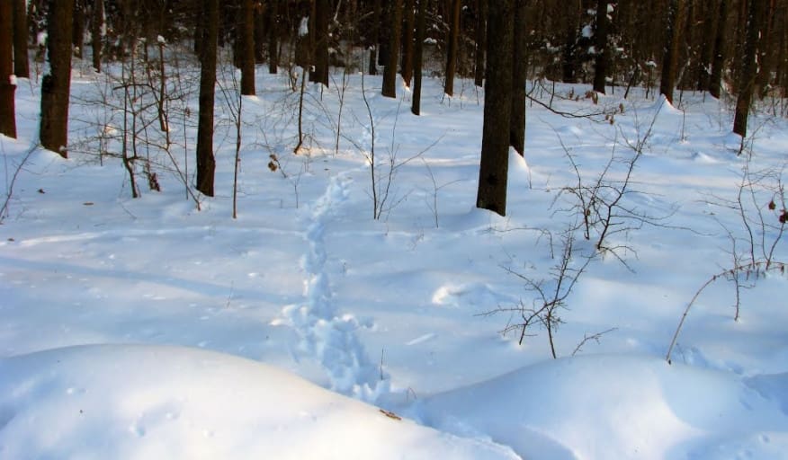 Если снег достаточно глубокий, капкан можно ставить под след. Делают это так: