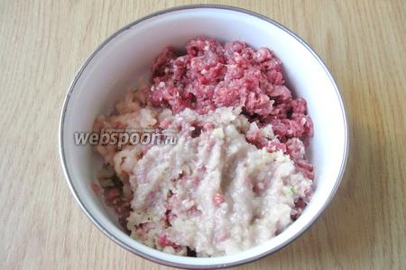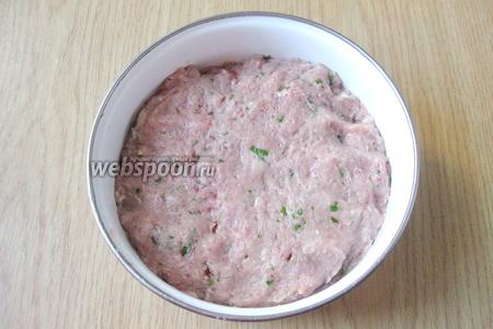 Очень тщательно перемешиваем все ингредиенты фарша. Если фарш не очень сочный на ваш взгляд, то можно добавить немного кипячёной воды, молока или мясного бульона.