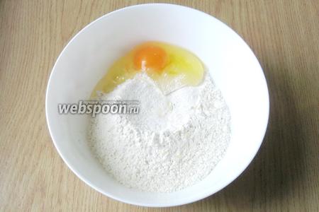Добавляем 1 сырое яйцо и несколько щепоток соли.