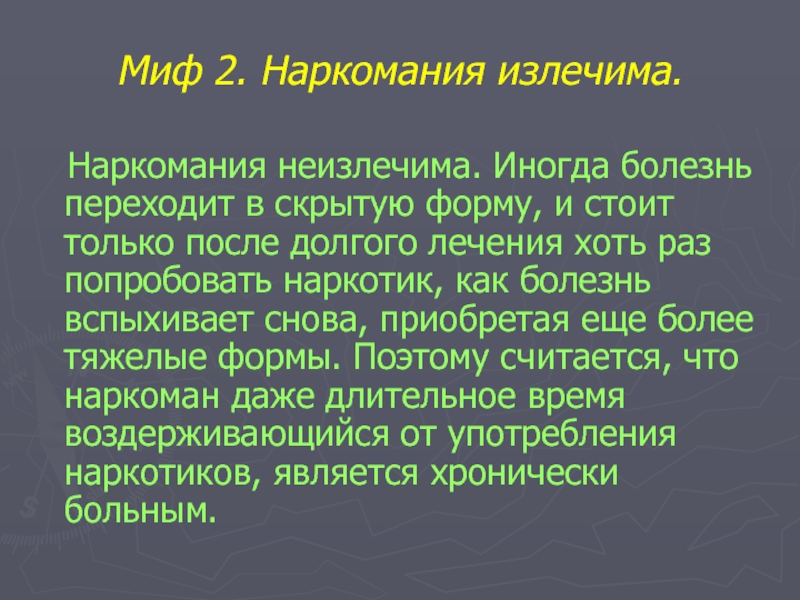 Миф 2. Наркомания излечима.