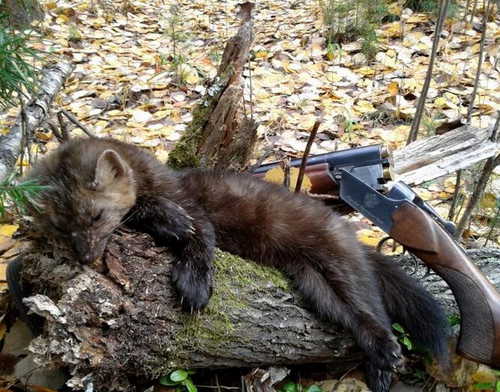 На соболя при охоте с ружьем берут дробь. После обработки густая шерсть закрывает дырочки полностью, шкурка не портится.