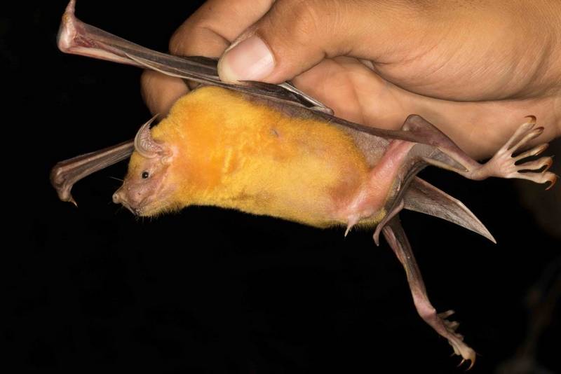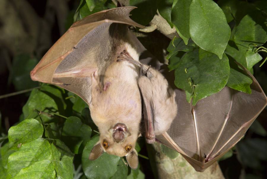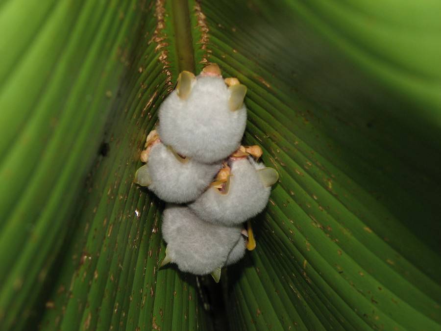 Есть летучие мыши белого цвета с желтыми ушками и носиком – это гондурасские белые летучие мыши (лат. Ectophylla alba).