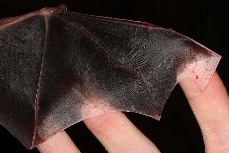 Крылья летучей мыши образуют пальцевые кости, покрытые тонкой кожей. Перепонки крыльев составляют около 95% поверхности тела. Они помогают регулировать температуру тела, кровяное давление, водный баланс и газообмен.