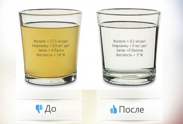 Содержащая железо вода (особенно подземная) сперва прозрачна и чиста на вид. Однако даже при непродолжительном контакте с кислородом воздуха железо окисляется, придавая воде желтовато-бурую окраску. Уже при концентрациях железа выше 0,3 мг/л такая вода способна вызвать появление ржавых потеков на сантехнике и пятен на белье при стирке. При содержании железа выше 1 мг/л вода становится мутной, окрашивается в желто-бурый цвет, у нее ощущается характерный металлический привкус.