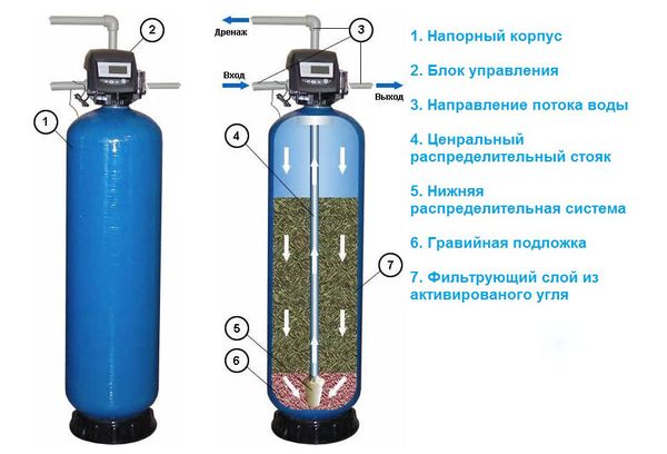 Периодически картридж нуждается в восстановлении с помощью солевого раствора, потому такие фильтры оснащены солевым баком.