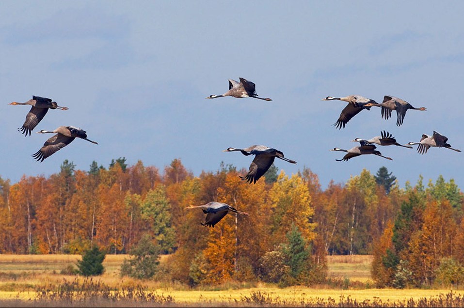 Если журавли летят высоко, не спеша и "разговаривают", будет стоять хорошая осень.