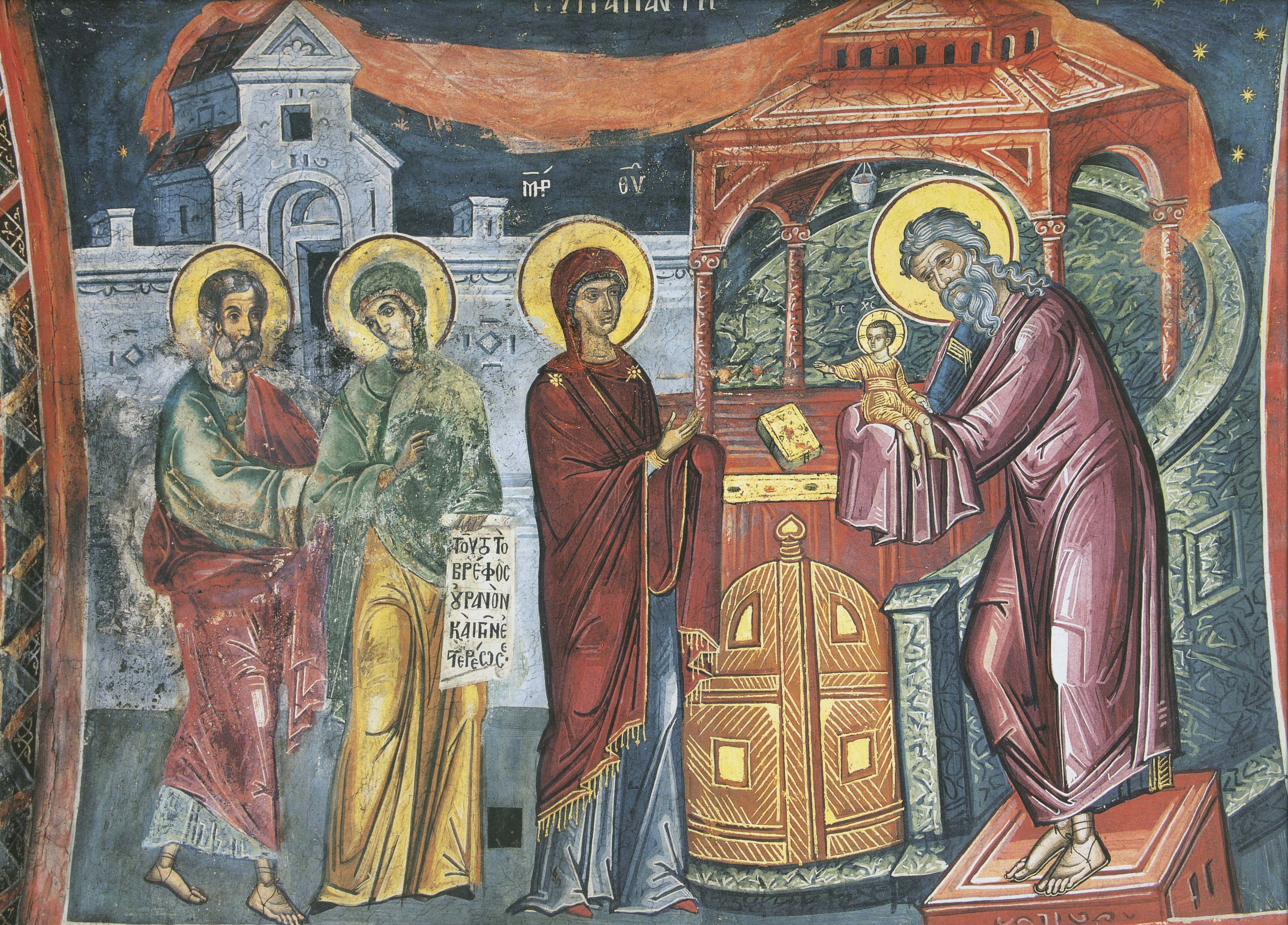 По иудейскому обычаю, на 40-й день после рождения Богородица принесла сына в храм, чтобы посвятить первенца Богу.