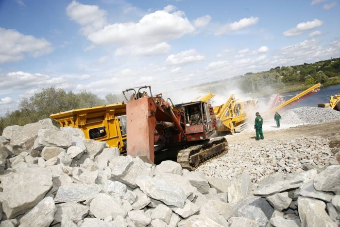 После завершения подрывных работ на участок стекаются экскаваторы и самосвалы. После погрузки материала выполняется доставка на ближайший дробильно-сортировочный участок. Основным оборудованием на нем являются грохоты и дробильные аппараты. За ними следуют конвейеры и транспортеры. В процессе дробления материала используется несколько разновидностей агрегатов. Основу составляют гирационныи и вибрационные. Но для крупногабаритной основы применяются колосниковые установки. Во время дробления щебня на более мелкие фракции применяются такие виды установок: