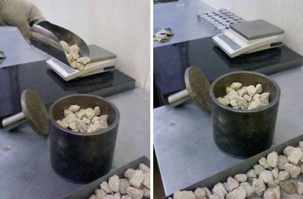 Сила воздействия зависит от диаметра такого устройства. Так, для цилиндра с диаметром 75 мм сила воздействия равна 5 000 кг в секунду. Для устройства диаметром 150 мм сила воздействия составляет 20 000 кг в секунду. Далее определяют процент потери массы щебня после раздавливания. В свою очередь, этот процент и допустимые ГОСТами значения указывают на принадлежность материала по прочности к конкретной марке.