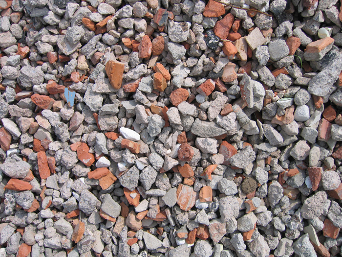 Получают в процессе измельчения строительных отходов, подлежащих утилизации: кирпича, бетона или газобетона, асфальта. Качественные характеристики довольно невысокие из-за содержащихся примесей. Этот вид дешевле природного, но применение его в ответственных местах специалисты исключают. Перед началом работ вторичный гранулят желательно проверить на прочность.