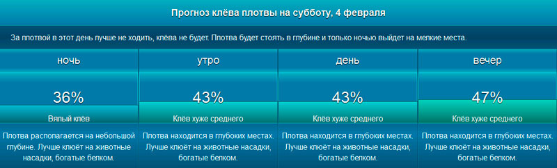 ПРОГНОЗ АКТИВНОСТИ КЛЕВА для оз.Сенеж на 4 ФЕВРАЛЯ: