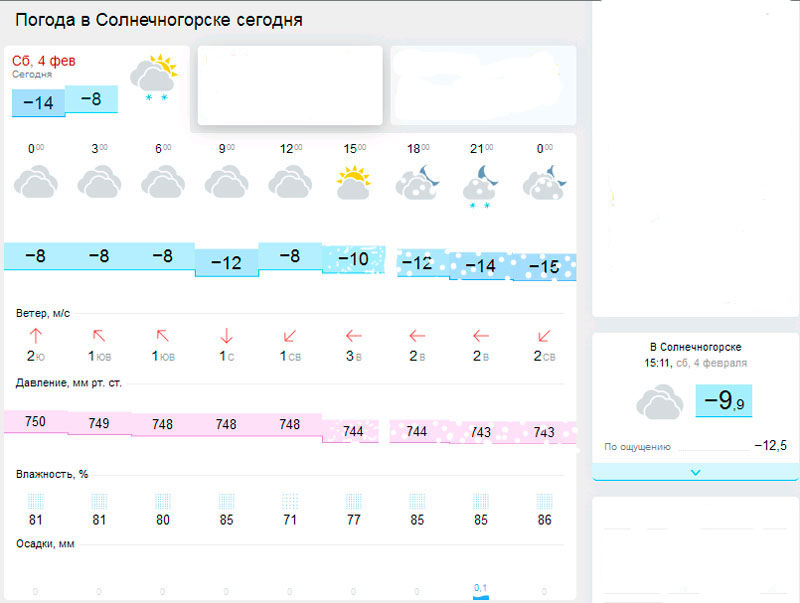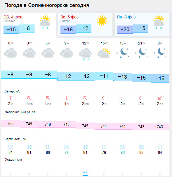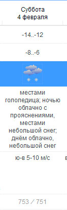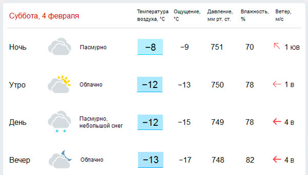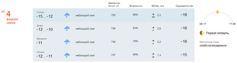 А теперь рассмотрим более подробный детальный прогноз погоды на 4 февраля.