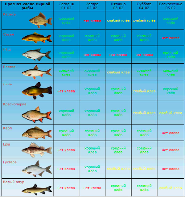 Планируя рыбалку, опирайтесь на свой опыт, погодные условия и этот прогноз.
