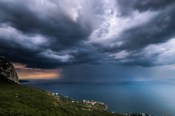 Очень красивые снимки получаются до или после грозы. Когда в густых тучах образовываются прорехи и через них пробиваются солнечные лучи. Вот в такое время нужно ловить момент, потому что освещенные солнцем участки пейзажа постоянно изменяются. Вот тут как-раз и нужно чутье фотографа, чтобы понять, какое освещение самое выигрышное. Это же правило касается, если вам удалось поймать проливающейся вдалеке дождь из грузной тучки. Выглядит потрясающе. Если нет конкретной задумки снять пейзаж (ну или портрет) в дождь или снегопад, то осадки в большинстве случаев только мешают сделать хороший снимок.