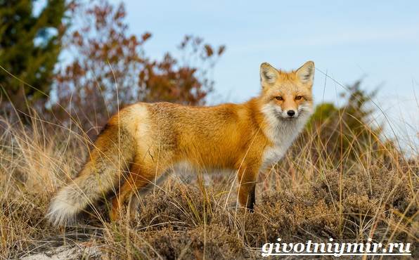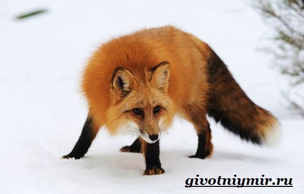 У рыжей лисицы кончик хвоста окрашен в белый цвет, а лапки имеют черные вкрапления.