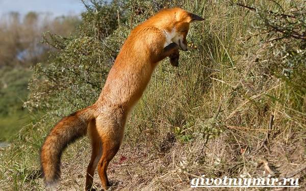 Зрение лисы находится на таком высоком уровне, что она все видит даже во время довольно плохой видимости. Ее ушки, которые постоянно двигаются, улавливают малейшее шуршание, это помогает лисе заметить грызунов.
