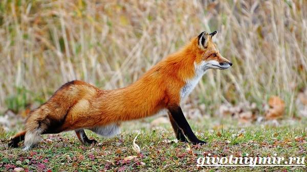 В отличии от других представителей семейства Псовых Рыжая Лиса имеет более длинные лапы и меньше желудок. Благодаря этому лисица может развивать скорость до 48 км/час.