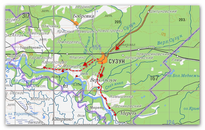 До Сузуна проблем добраться не составляет, а вот подъезды к реке бывают сложные, особенно после дождей.
