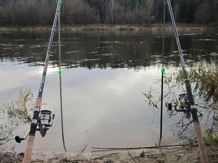 Заброшенную оснастку ставят на подставку, на конец удилища или на леску цепляют колокольчик, чтобы лучше видеть поклевки. Что касается длины удилища, то в зарослях используют короткое удилище (1,5 метра), на обширном пространстве оптимальная длина удилища составляет 2,1 м.