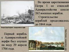 Слайд 5 Беггров, Карл Петрович - Адмиралтейская верфь Тейлер, Иоханнес - Адмиралтейские верфи Первый корабль с Адмиралтейской верфи был спущен на воду 29 апреля 1706 года. Во время царствования Петра I со стапелей Адмиралтейства сошло 262 военных корабля. Строительство кораблей продолжалось до 1844 года.
