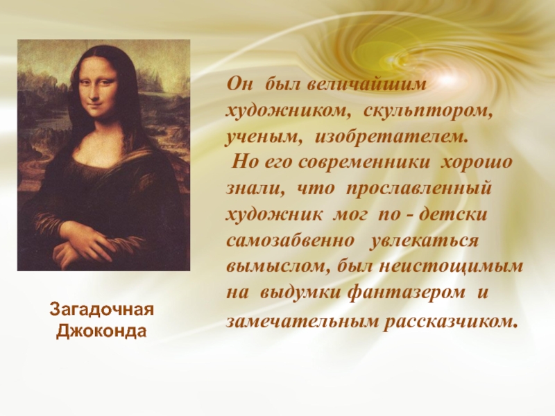 Он был величайшим художником, скульптором, ученым, изобретателем. Но его современники хорошо знали, что прославленный художник мог по - детски самозабвенно увлекаться вымыслом, был неистощимым на выдумки фантазером и замечательным рассказчиком.