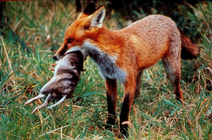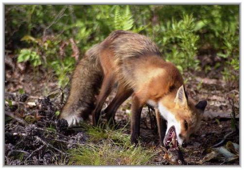 Вообще, лисица – зверь всеядный. Все, что попадется живого ей под лапу, идет на пропитание: от улиток и жуков до зайцев и ночующих под снегом тетеревов. Бывает, что посещает Патрикеевна и курятники, а также городские свалки, где всегда есть чем поживиться. Не брезгует она и растительными кормами – ягодами и фруктами. Зверь с удовольствием ловит рыбу и раков, а иногда даже выкапывает дождевых червей.