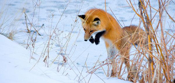 Охота лисы на полевых мышей - это очень интересный процесс. Лис тихо передвигается по снегу, прислушиваясь к писку своей потенциальной жертвы. Учуяв грызуна и вычислив место его нахождение, он стремительно ныряет в снег носом, помогая себе лапами добраться до добычи.