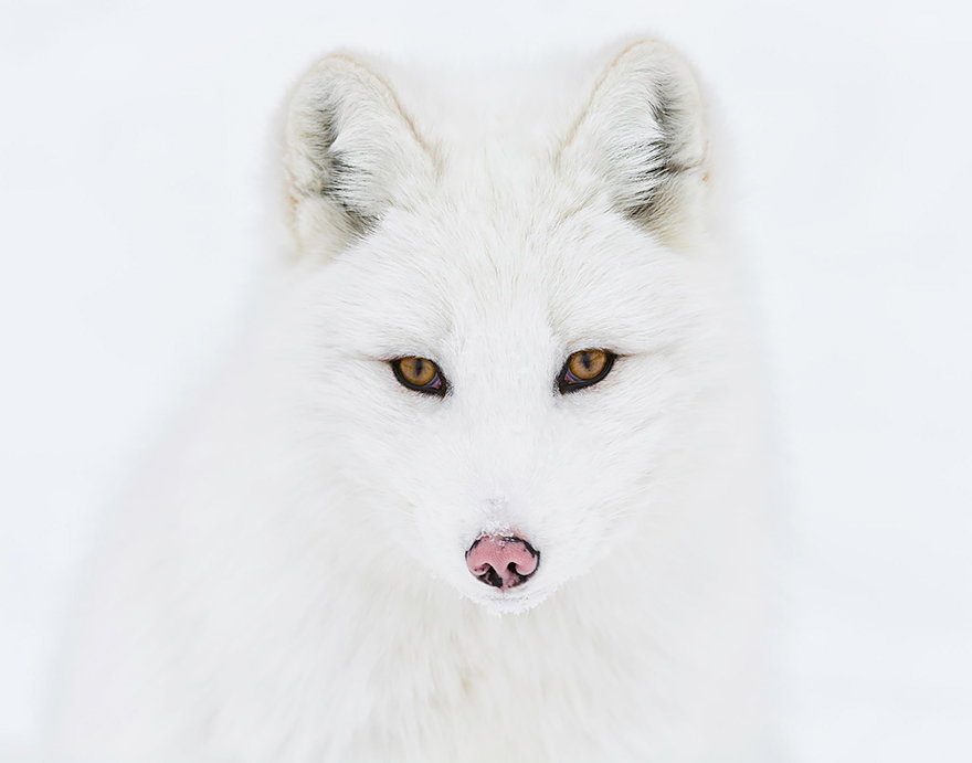 Песец обитает за Северным полярным кругом. Густой мех спасает его от самых низких температур до -70 градусов по Цельсию. У этих лис относительно короткие ноги и мордочки, что помогает сохранить тепло. (Автор фото: Сесиль Сонстеби)