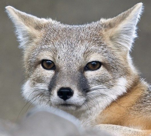 Серая лисица распространена в Северной Америке. Она отличается палево-серым окрасом меха с чёрным кончиком хвоста. Эта лиса одна из немногих псовых, способных лазить по деревьям. (Автор фото: Джон Пейн)