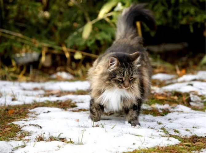 Если кошка живет в хозяйском доме, но привыкла гулять на улице, в морозные дни ее лучше на прогулку не выпускать. И уж точно не стоит, уходя из дому, оставлять кошку во дворе до своего возвращения. Домашняя кошка – не белый медведь, поэтому не стоит питать иллюзий, что она может выживать в арктических условиях.