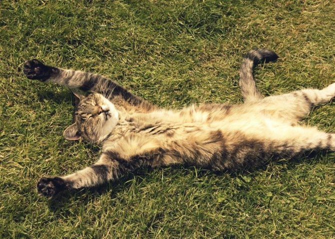 Такому поведению домашних любимцев существует логичное объяснение: кошки намного раньше людей чувствуют изменения влажности воздуха, их тела готовятся к предстоящему теплу. Чем сильнее животное открывает поверхность тела, тем больше становится площадь термоотдачи.
