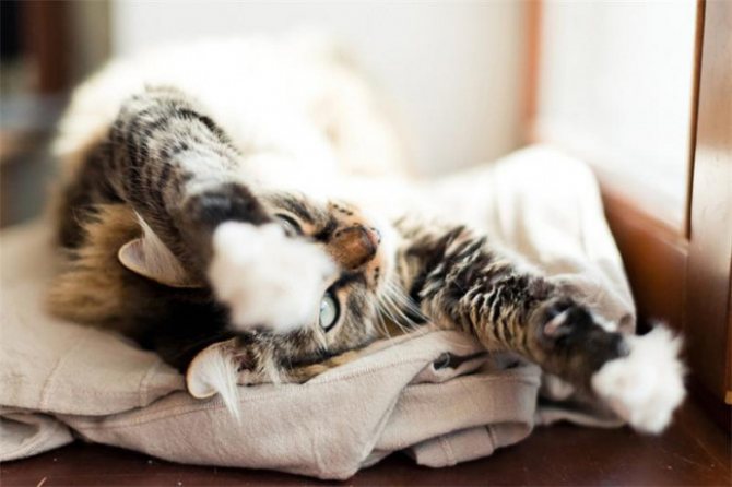 Если кошка катается по половицам – тепло в дом стучится. Иными словами, если питомец развалился на спине, в расслабленной позе вытянув лапы, то близятся тёплые дни.