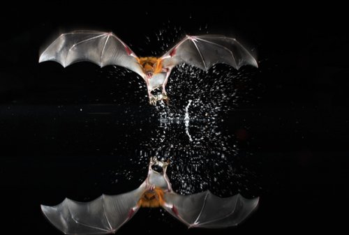 Летучие мыши, которые питаются рыбой (например, мексиканская рыбоядная мышь), патрулируют водную поверхность по ночам, излучая весьма сильные эхолокационные сигналы. Однако эти сигналы не проникают в толщу воды. Мышь не обнаружит рыбу, находящуюся под водой, но сразу же найдёт, если рыба высунет из воды хотя бы небольшую часть тела .