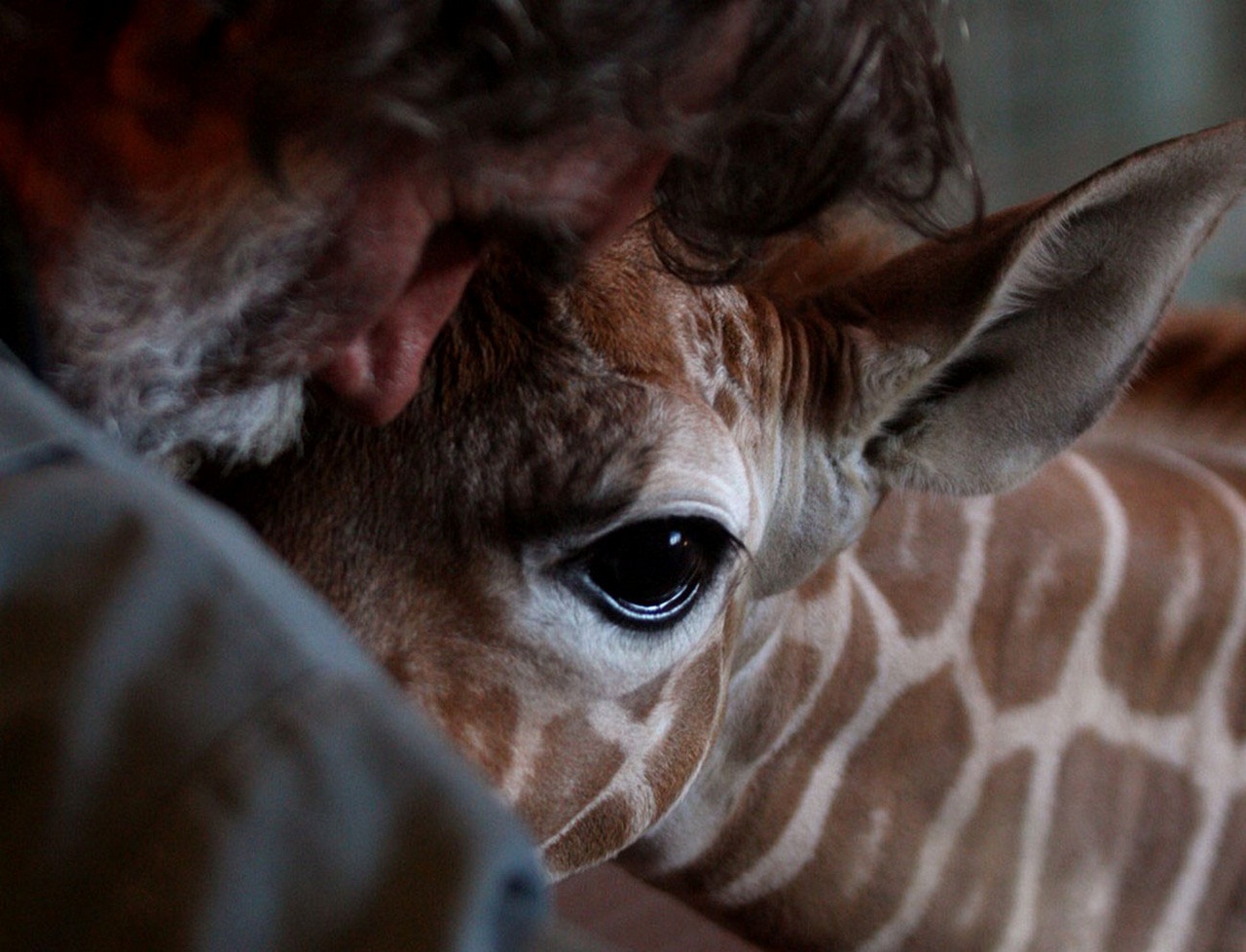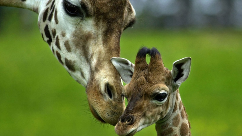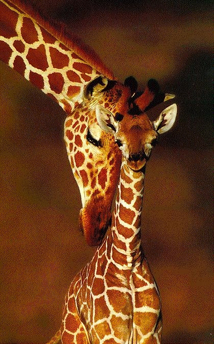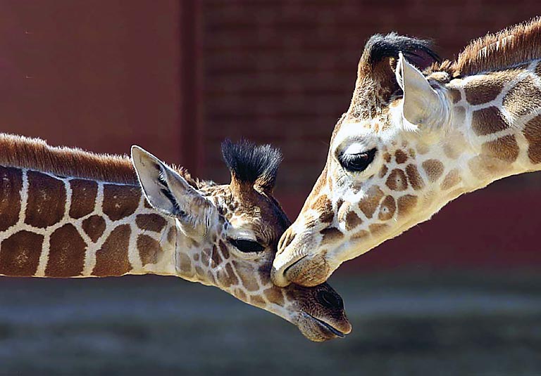 Рождение жирафёнка - радостное событие для всего стада. Появившегося на свет жирафёнка, каждый взрослый нежно приветствует прикосновением носа.
