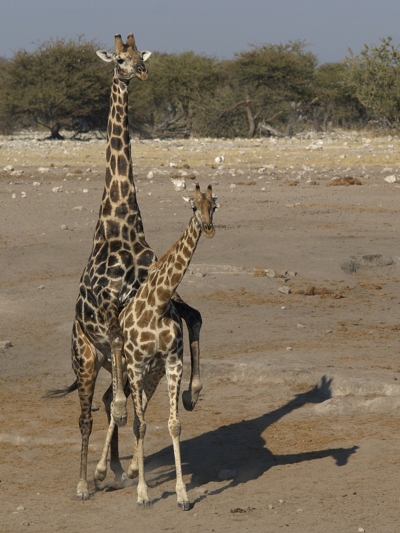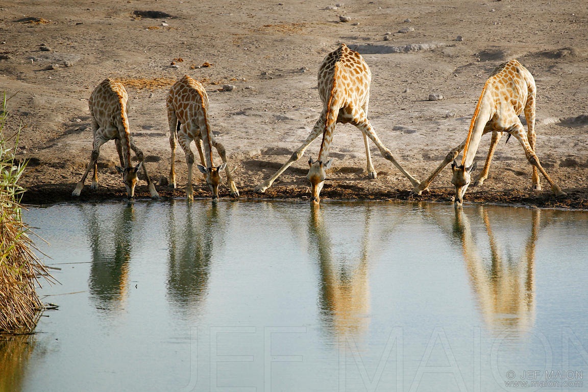 Жирафы умеют ходить только по твердой равнине и только двумя способами: галопом, выбрасывая вперед сначала 2 передние ноги, потом 2 задние, или иноходью, переставляя по очереди сразу 2 левые ноги, потом 2 правые.