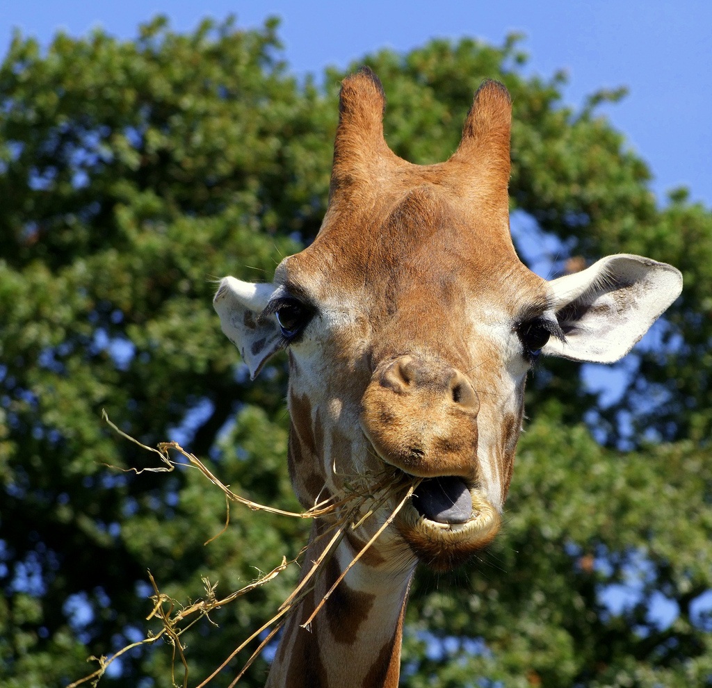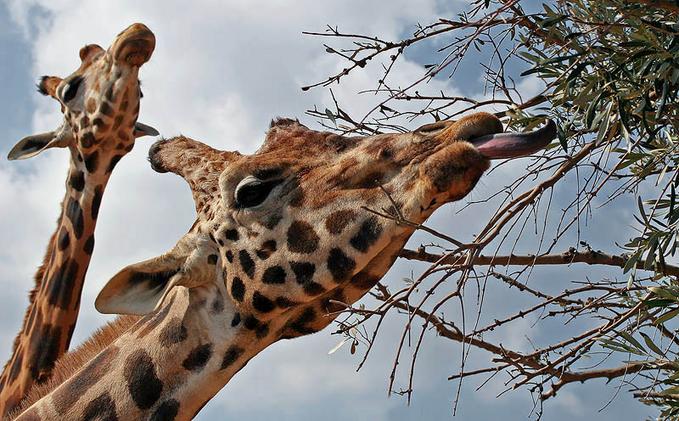 Большое удивление вызывает язык животного: в длину он достигает почти полметра. Таким языком жираф может даже чистить себе уши, не говоря уж о захвате еды.
