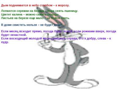 Также есть приметы, связанные с различными праздниками, с погодой в эти дни: