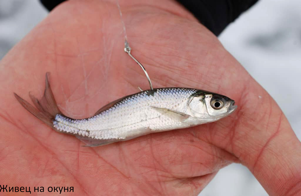 Наилучшей натуральной наживкой для ловли окуня осенью является живец. В зависимости от размеров живца малька насаживают на одинарный крючок или двойник, который продевают между жабрами. Изготавливают также специальные оснастки из двух одинарных крючков. Одним прокалывают губу, другой вводят в спину так, чтобы жало торчало наружу.