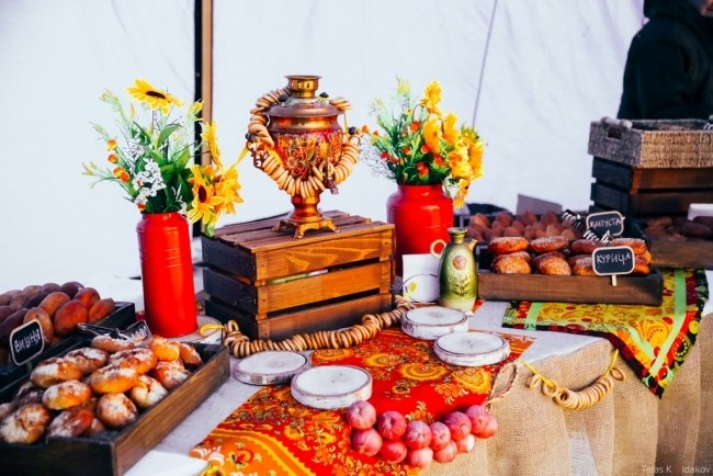 Отмечать Масленицу на улице не только можно, но и даже нужно. И особенно здорово устраивать пир с соответствующим главной тематике колоритом. Яркие шатры и палатки, пузатые коптящие небо самовары, развешенные везде бусы из бубликов и баранок, пироги и расстегаи, ну и, само собой разумеется, румяные блинчики, выпекающиеся тут же на медных или чугунных сковородках с длинными ручками – такой антураж просто по определению не может оставить равнодушным.