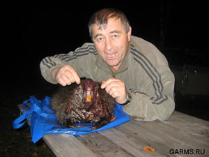 Если бобр плывет к Вам, потихоньку, аккуратно, когда он скрывается из вашего поля зрения за разными корягами, торчащими из воды, поднимаем ружье, прижимаем к плечу, и уже выцеливаем плывущего бобра. Стрелять не спешим, НУЖНО бить наверняка. Лучше немного попортить шкуру, но добыть, чем потом сожалеть об ушедшем подранке. И вот бобр, заинтересовавшись чем-то у берега, остановился на расстоянии 15 м от Вас! Прицелившись в голову или в переднюю часть тела, жмем на курок. После выстрела, не мешкаем - сразу к бобру, будьте готовы сделать еще один выстрел, если бобр много плюхает на поверхности воды хвостом. Если же после выстрела ничего похожего на подранка не было, подходим к месту попадания картечи и высматриваем, трофей. Здесь то и нужен фонарик. Стреляйте подпустив