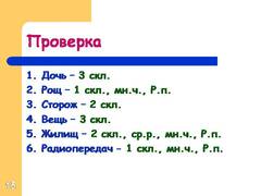 15 Дочь – 3 скл. Рощ – 1 скл., мн.ч., Р.п. Сторож – 2 скл. Вещь – 3 скл. Жилищ – 2 скл., ср.р., мн.ч., Р.п. Радиопередач - 1 скл., мн.ч., Р.п.