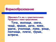 9 Образовать Р.п. мн. ч. существительных. Придумать с ними предложения. Туча, жилище, свеча, чаща, крыша, дача, кожа, удача, училище, лужа, роща, полчища, плечо, груша, встреча.