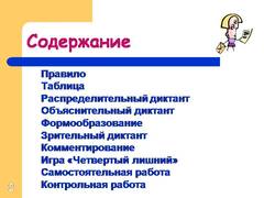 2 Правило Таблица Распределительный диктант Объяснительный диктант Формообразование Зрительный диктант Комментирование Игра «Четвертый лишний» Самостоятельная работа Контрольная работа