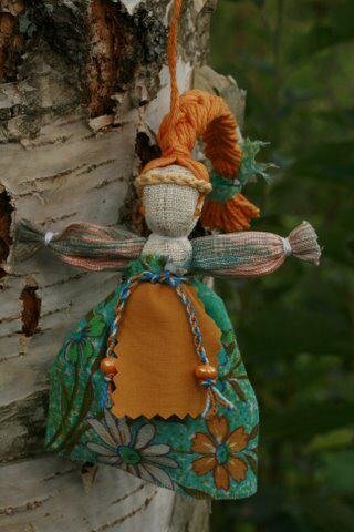 Куклы – веснянки, в виде двух антропоморфных фигурок, перевязанных ленточкой, дополняют символику праздника ">