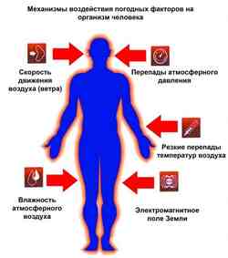 Метеозависимость, ею страдают, практически, три четверти населения планеты. Еще в очень далекие времена замечали, что при определенных погодных условиях: повышенного атмосферного давления, дождя, магнитных бурь, резких перепадов температуры и тому подобное у человека организм начинает выдавать особые реакции в виде всевозможных недомоганий (болит голова, ломят кости и т. д.). Так же в такие периоды обострялись некоторые заболевания, особенно хронического характера. В наше время, все эти замечания уже научно обоснованы.Чаще всего ей страдают люди, которые перенесли различные операции, сотрясение мозга, и у которых проблемы в венозной или артериальной системой (, вегетососудистая дистония).