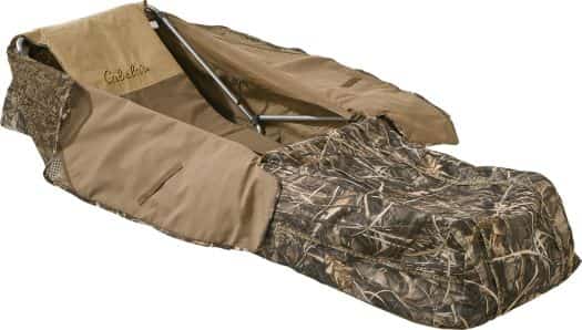 Сверху есть створки, которые во время ожидания полностью закрыты, и в случае пролета гусей охотник их открывает и ведет огонь. Плюсом конструкции является то, что человек во время нахождения в нем находится в комфортных условиях. Минусом является стоимость изделия и ограниченная видимость во время ожидания гусей, ведь находиться придется в лежачем положении, а вести огонь с положения полулежа.