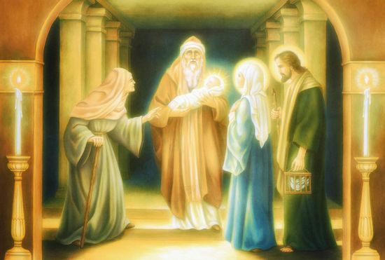 Престарелая вдова пророчица Анна, жившая при Иерусалимском храме, свидетельствовала об этом. Слова, сказанные в момент встречи Симеоном, стали частью православного богослужения.