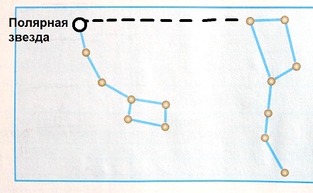 Задание 1. Найди на рисунке Полярную звезду и подпиши ее. Объясни (устно), как тебе удалось отыскать эту звезду среди других.
