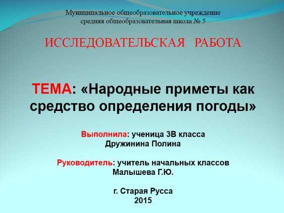 ТЕМА: «Народные приметы как средство определения погоды»
